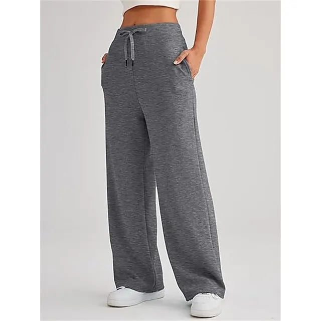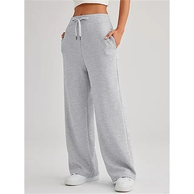 Women’s Sweatpants Wide Leg Pants Trousers Plain Full Length Micro-elastic Mid Waist Active Streetwear Outdoor Street Light Gray Dark-Gray S M Fall Winter