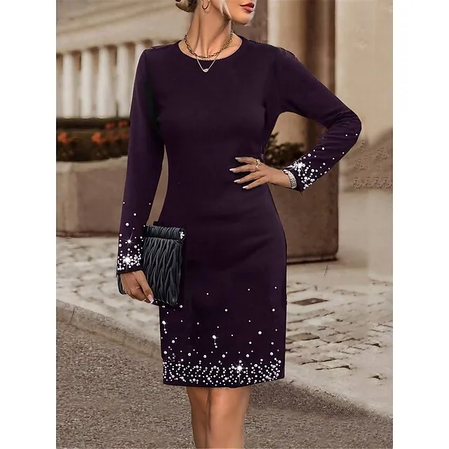 Women’s Velvet Dress Party Dress Cocktail Dress Mini Dress Purple Long Sleeve Pure Color Patchwork Spring Fall Winter Crew Neck Fashion Winter Dress Office Vacation S M L XL XXL 3XL