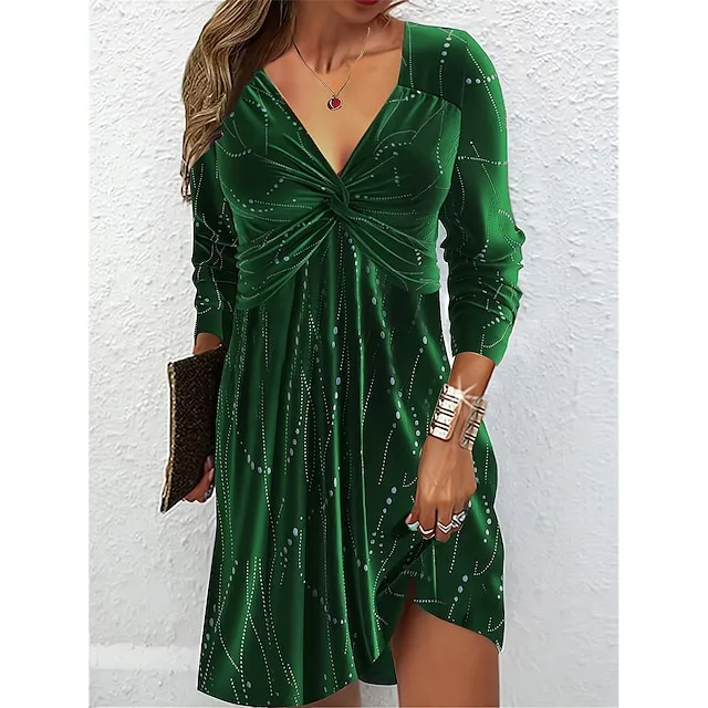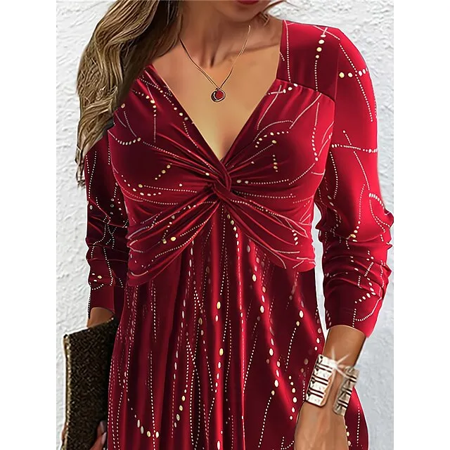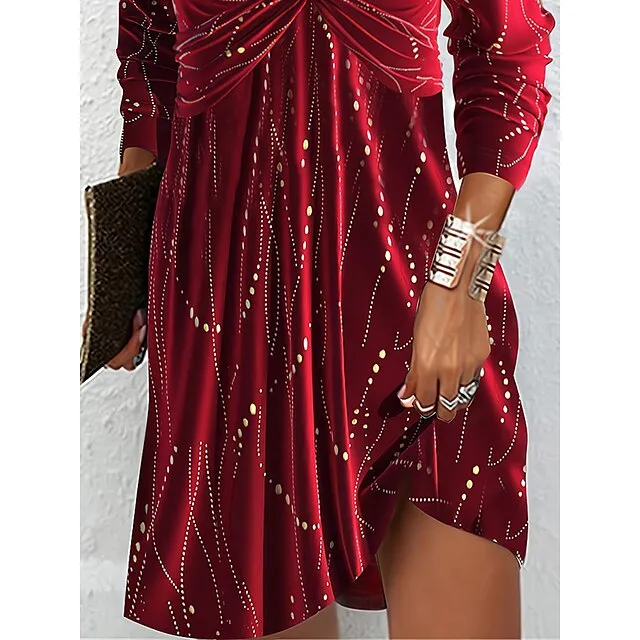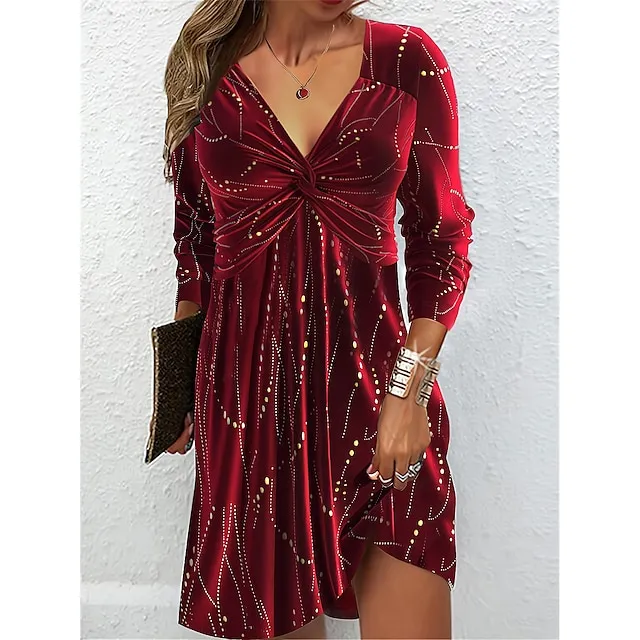 Women’s Velvet Dress Party Dress Cocktail Dress Mini Dress Wine Long Sleeve Line Ruched Spring Fall Winter V Neck Elegant Winter Dress Christmas Wedding Guest S M L XL XXL 3XL