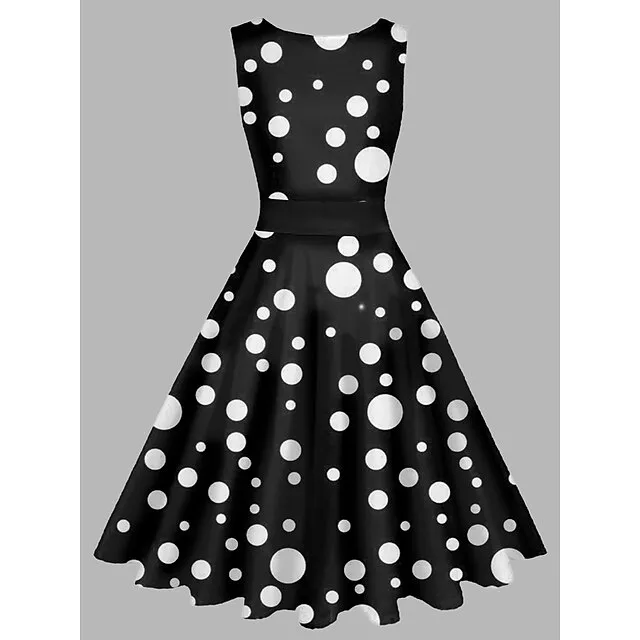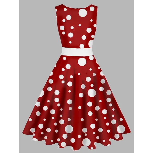 Women’s Vintage Elegant Vintage Tea Dresses Midi Dress Daily Date Ruched Print Polka Dot Crew Neck Sleeveless Slim Summer Spring Black Wine S M L XL