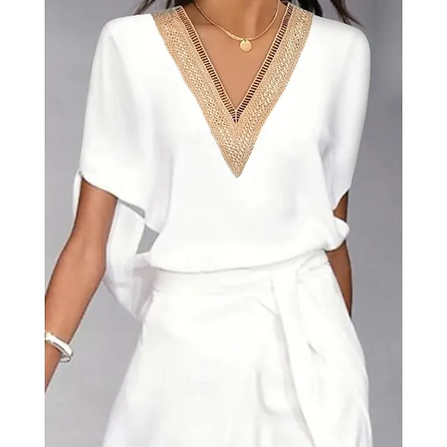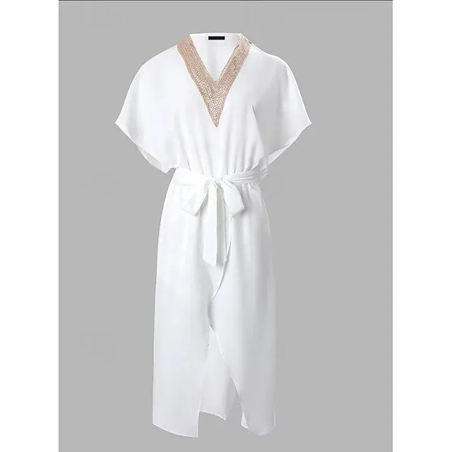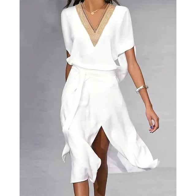 Women’s White Dress Lace Dress Casual Dress Mini Dress Lace up Split Street Holiday Date Streetwear Sexy V Neck Short Sleeve Regular Fit White Color S M L XL 2XL Size