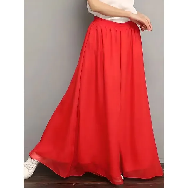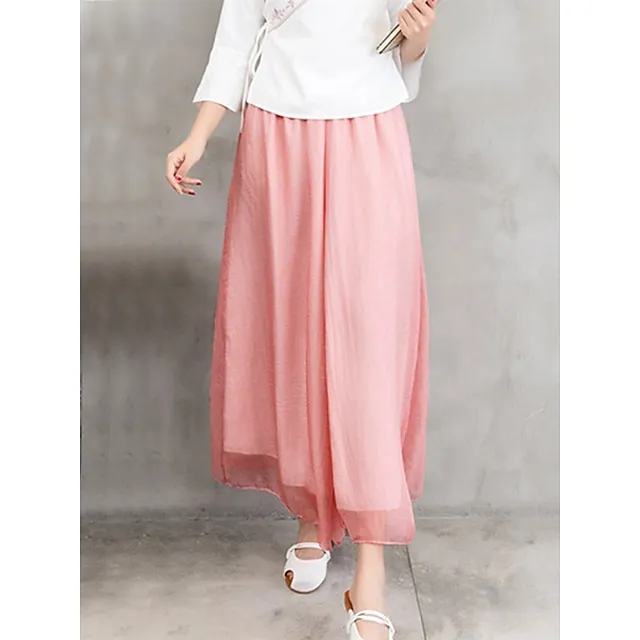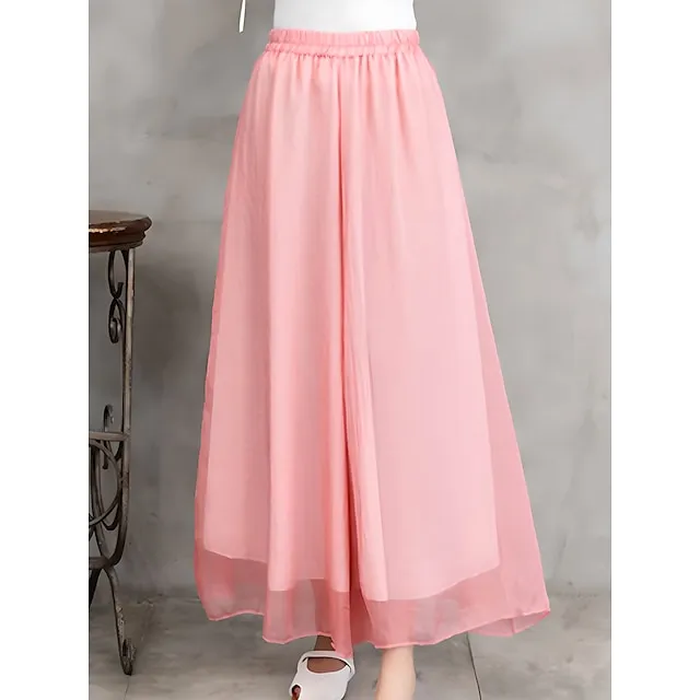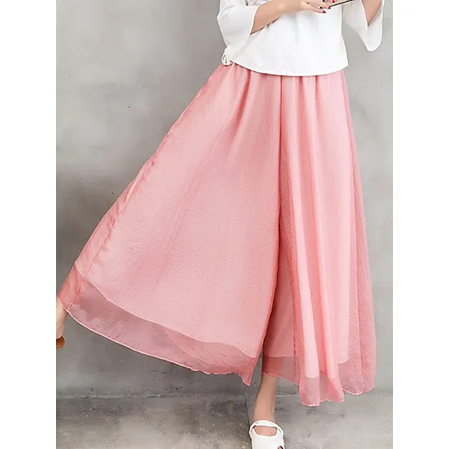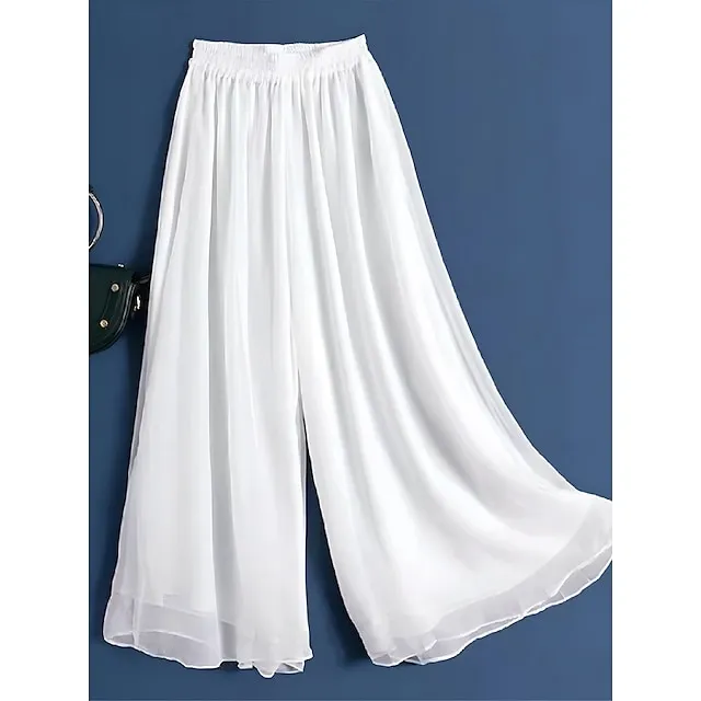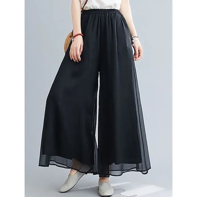 Women’s Dress Pants Wide Leg Chinos Plain Baggy Ankle-Length Micro-elastic Mid Waist Fashion Streetwear Daily Weekend Black S M Summer Spring & Fall