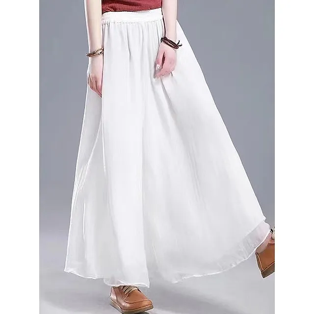 Women’s Wide Leg Chinos Pants Trousers Plain Wide Leg Baggy Full Length Micro-elastic Mid Waist Stylish Casual Valentine’s Day Daily Black White M L Summer Spring