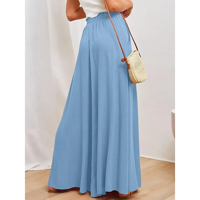 Women’s Dress Pants Wide Leg Chinos Plain Baggy Ankle-Length Micro-elastic Mid Waist Fashion Streetwear Daily Weekend Black S M Summer Spring & Fall