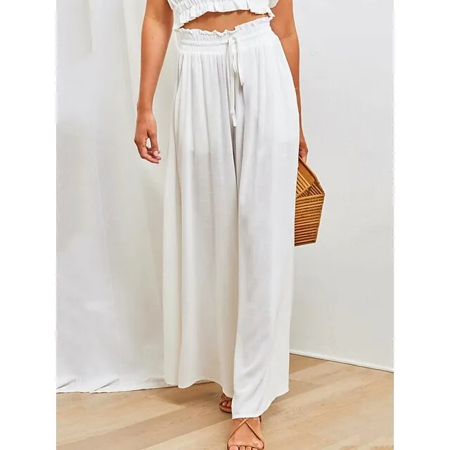 Women’s Culottes Wide Leg Wide Leg Chinos Letter Ruffle Layered Stretchy Mid Waist Basic Casual / Sporty Yoga Casual Black White S M Summer Spring & Fall