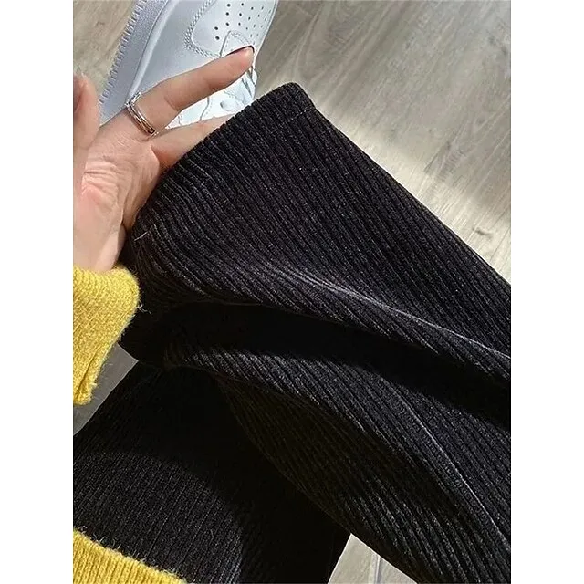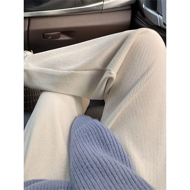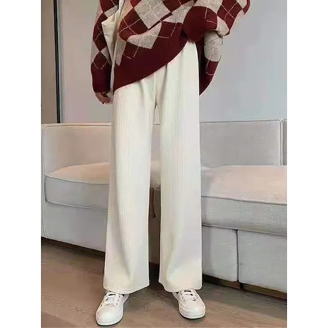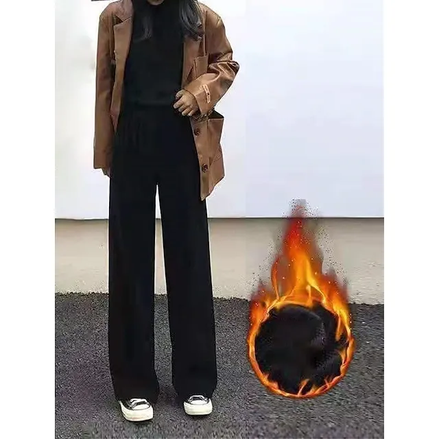 Women‘s Wide Leg Pants Fleece Trousers Baggy Full Length Micro-elastic High Waist Fashion Streetwear Outdoor Black Beige M L Fall Winter