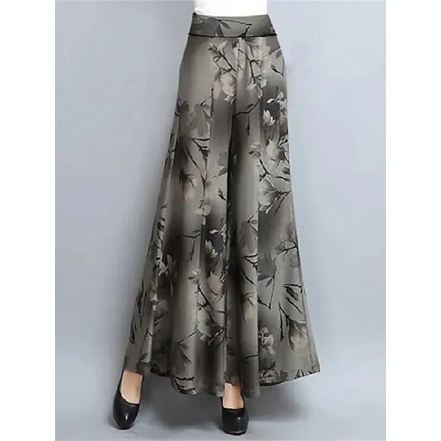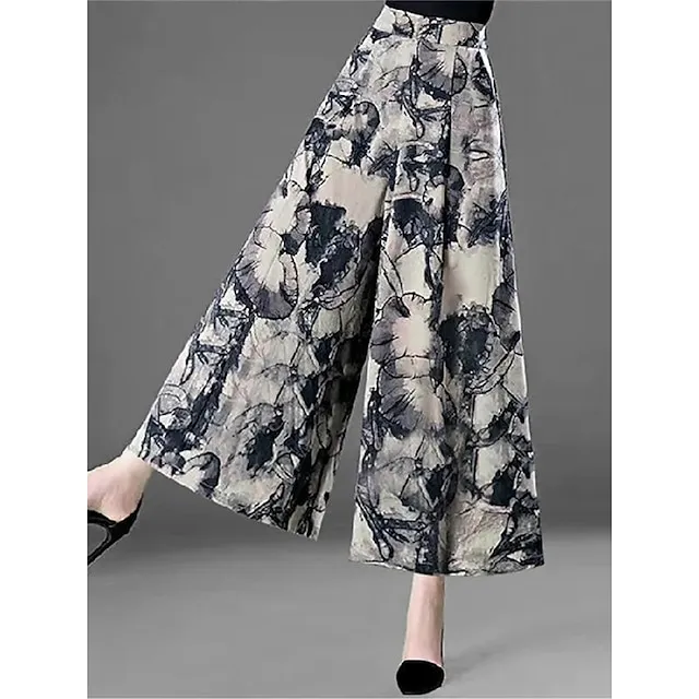 Women’s Wide Leg Pants Print Casual High Full Length Fall Winter White Blue Gray L XL XXL 3XL 4XL / Cotton Blend