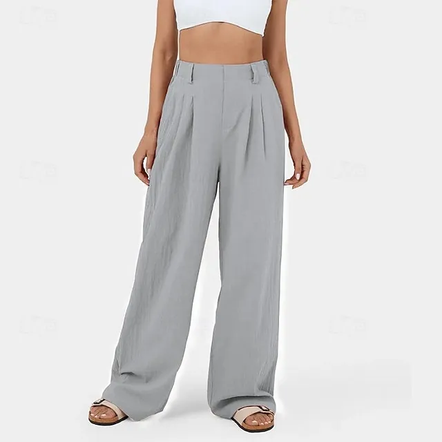 Women’s Wide Leg Pants Trousers Linen Cotton Blend Plain Side Pockets Wide Leg Ankle-Length Casual Daily Going out Weekend Army Green Burgundy S M Spring & Summer