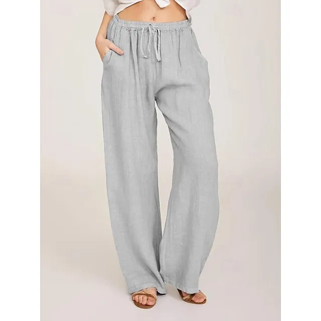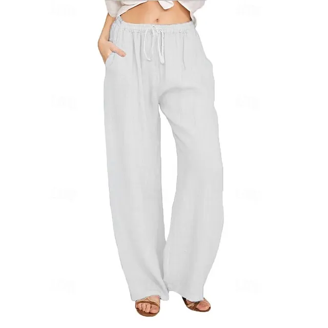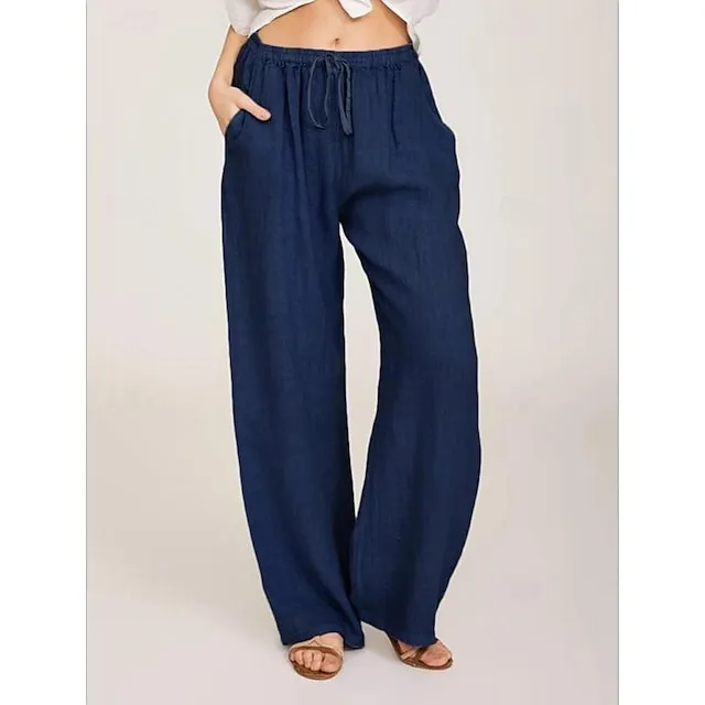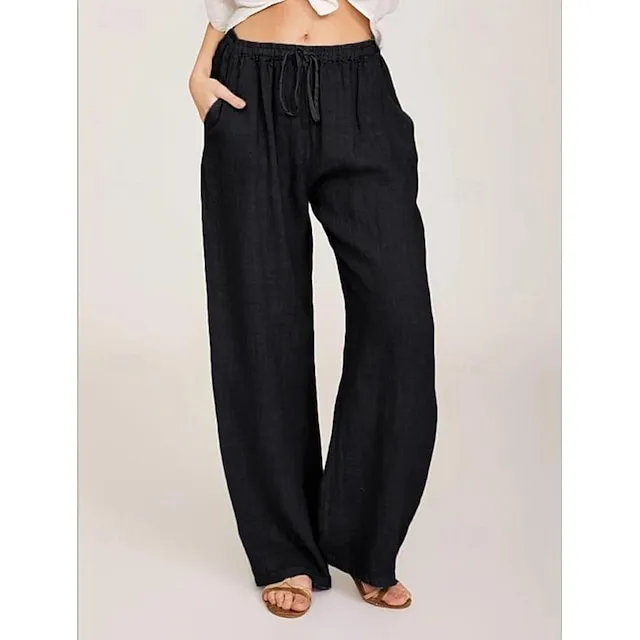 Women’s Wide Leg Pants Trousers Linen Cotton Blend Plain Side Pockets Wide Leg Full Length Casual Daily Going out Weekend Black White S M Spring & Summer
