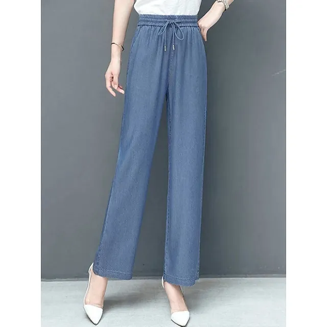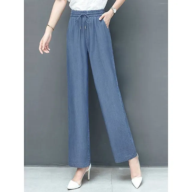 Women’s Jeans Wide Leg Baggy Jeans Micro-elastic Classic Modern Office Daily Black Blue S M Spring & Fall