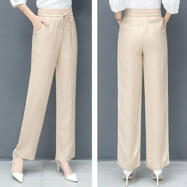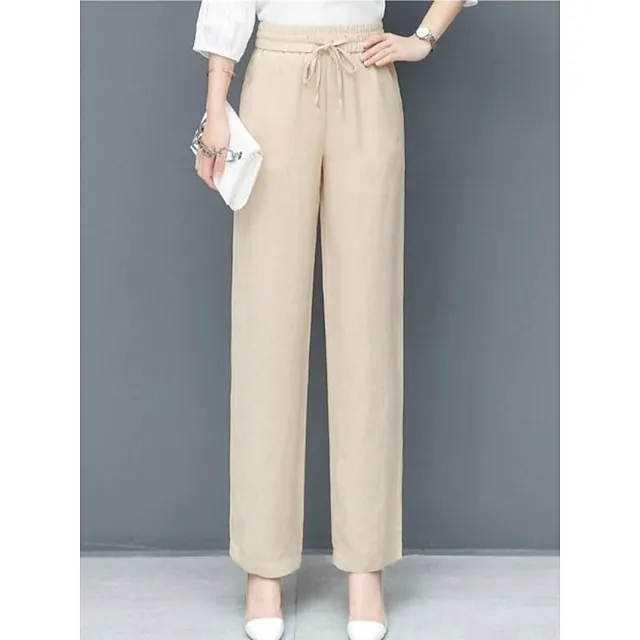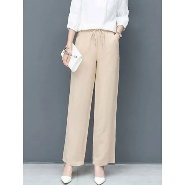 Women’s Wide Leg Chinos Bloomers Cotton Linen Solid Color Pocket Baggy Full Length Micro-elastic Vacation Casual Daily Holiday Black White L XL Fall Winter